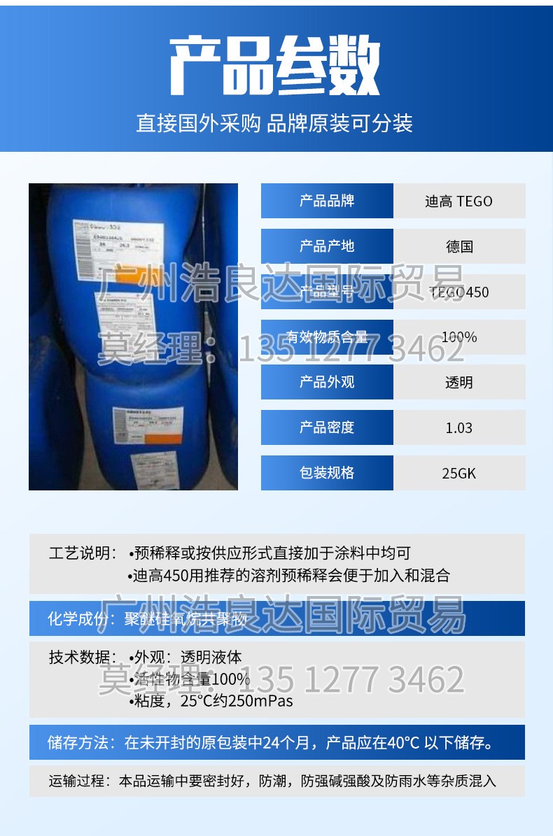德国TEGO迪高450流平剂木器家具涂料工业涂料汽车漆助剂